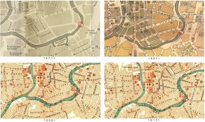 Kuznechny most maps 2.jpg|Кузнечный мост на картах Харькова разных лет. | |||